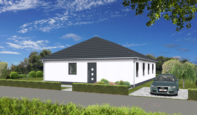 Dieser Bungalow wurde für eine Familie in 04774 Wermsdorf geplant und gebaut. Um die Privatsphäre unserer Bauherren zu schützen, zeigen wir auf dieser Seite ausschließlich Visualisierungen des Hauses.